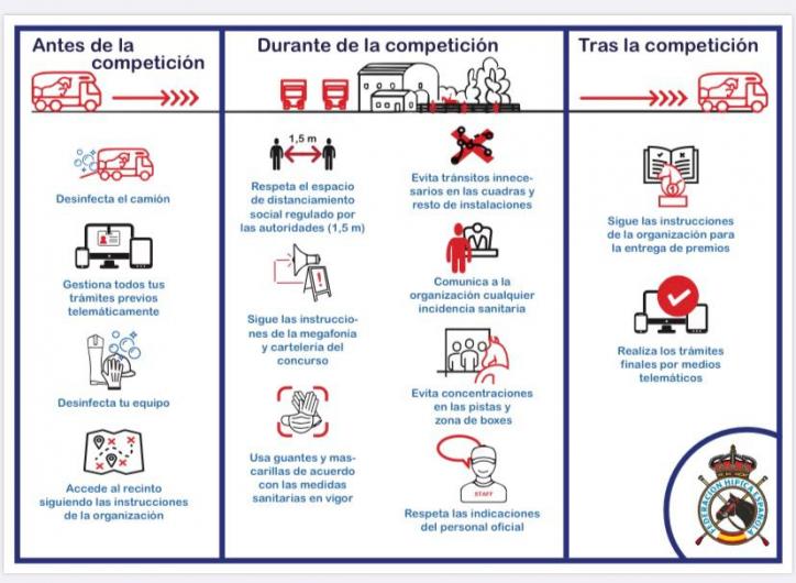 Como continuación del protocolo difundido hace unas fechas para la vuelta a la competición y con el fin de simplificar el mismo y hacerlo visual para todos de forma sencilla, hemos preparado la infografía adjunta que esperamos os sea de utilidad. Podéis hacer de ella el uso que os parezca conveniente en vuestras competiciones.